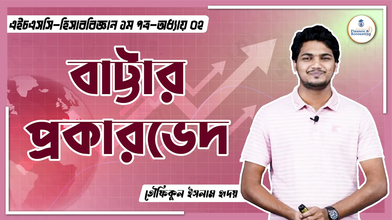 বাট্টার প্রকারভেদ বা “২য় অধ্যায় (chapter 2)” আজকের ক্লাসের আলোচ্য বিষয়। “বাট্টার প্রকারভেদ [ Types of Discounts ]” ক্লাসটি এইচএসসি’র একাউন্টিং (HSC Accounting) এর সিলেবাসের অংশ। এইচএসসি’র একাউন্টিং (HSC Accounting) বা একাদশ-দ্বাদশ শ্রেণীর হিসাববিজ্ঞান ১ম পত্র (Class 11-12 Accounting 1st Paper)” এর “২য় অধ্যায় (chapter 2)” এ পড়ানো হয়।